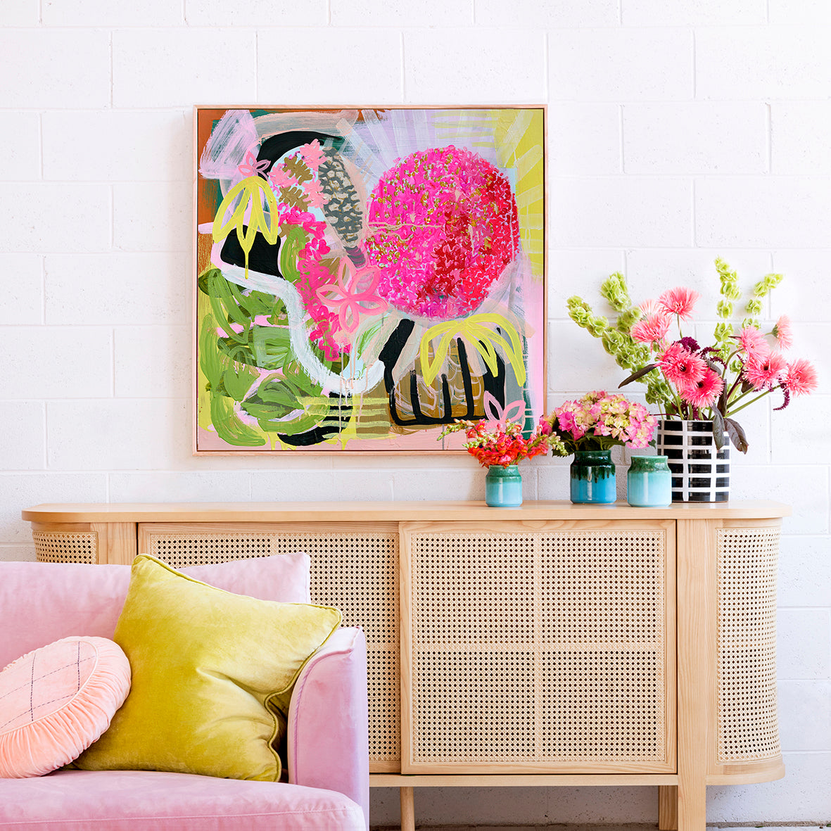 Framed option is printed on canvas, stretched and box framed in a beautiful Oak timber.
