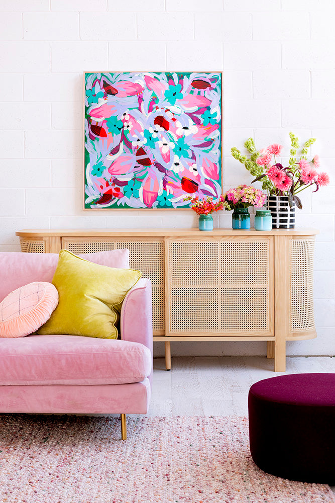 An original framed artwork by Morgan Jamieson, created with acrylic paints and mediums. Measures 100 x 100cm and framed in natural Oak.