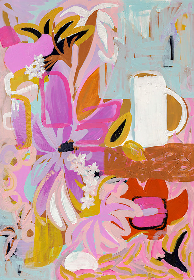 This is a giclee reproduction from an original painting using acrylic paints and other mediums. Printed on 210gsm natural cotton rag paper or 'Sihl Luna Artist' 350gsm canvas. Archival pigment inks.