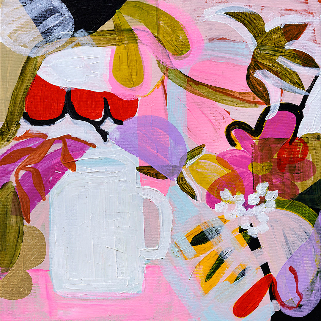 This is a giclee reproduction from an original painting using acrylic paints and gold foil. Printed on 210gsm natural cotton rag paper or 'Sihl Luna Artist' 350gsm canvas. Archival pigment inks.